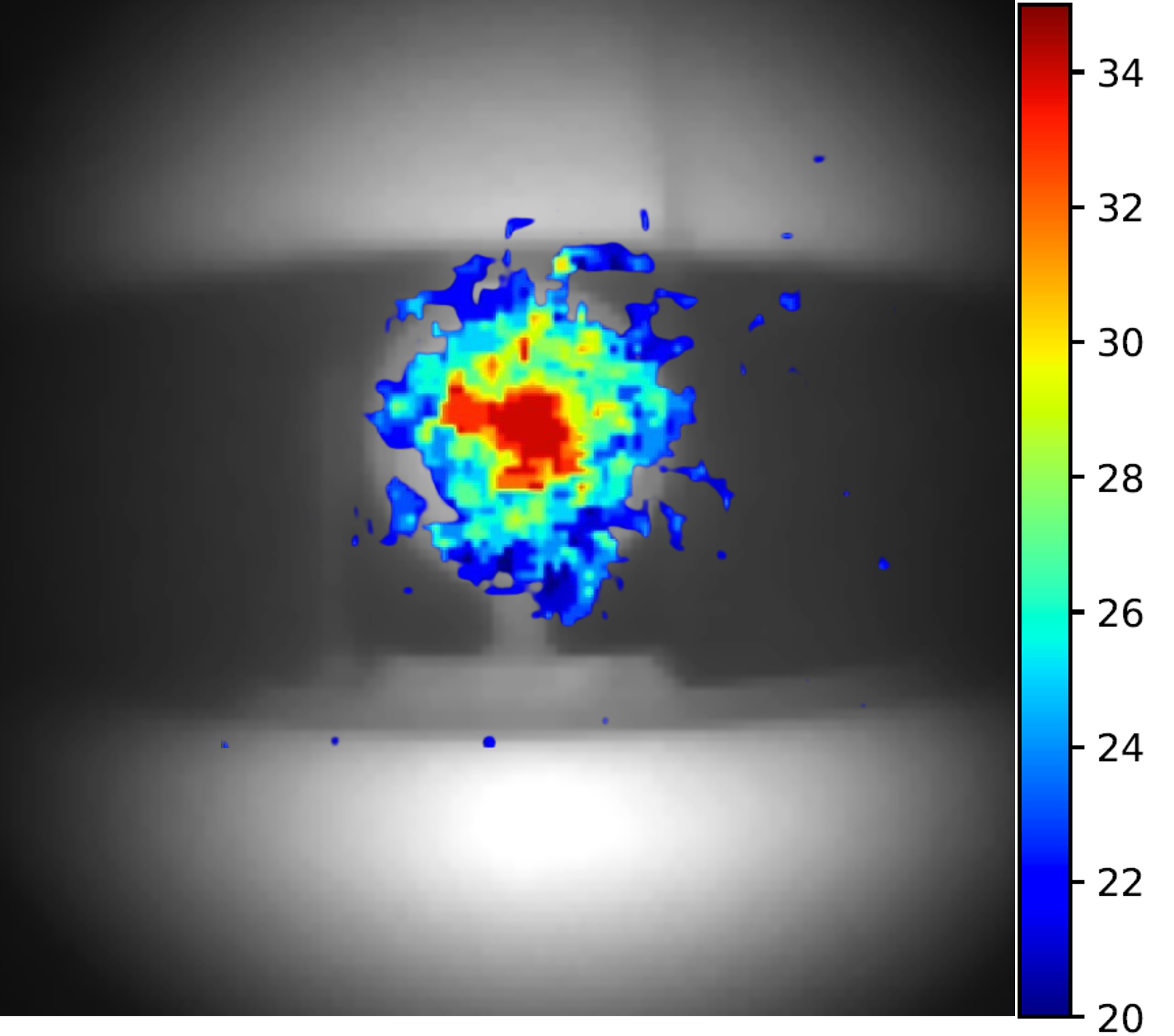 Under UV-free environment such as rooms lit by LED lights or inside gloveboxes with acrylic windows, our camera can detect a 3 kBq alpha source from a distance of 1 meter within just 10 minutes. The detection sensitivity of our system is approximately proportional to the distance.