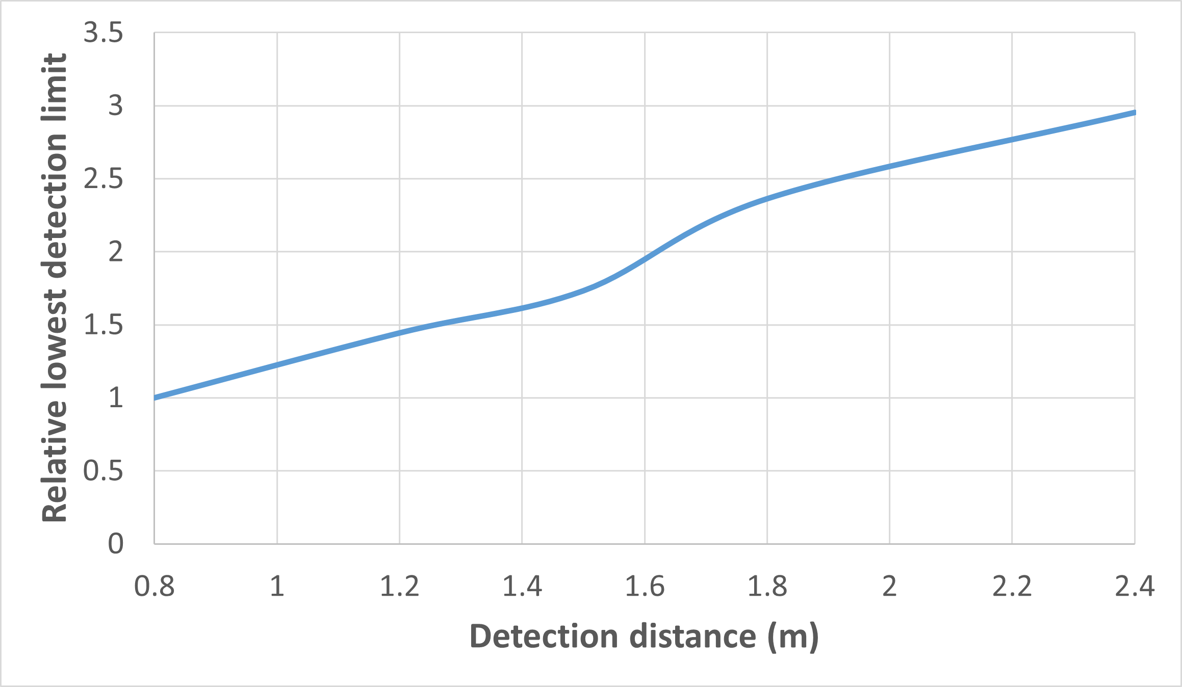 At night time, we have an advanced background reduction system to remove the UV background from city light or moon light. The lowest detection limit is around 100 kBq (1 meter, 10 minutes).